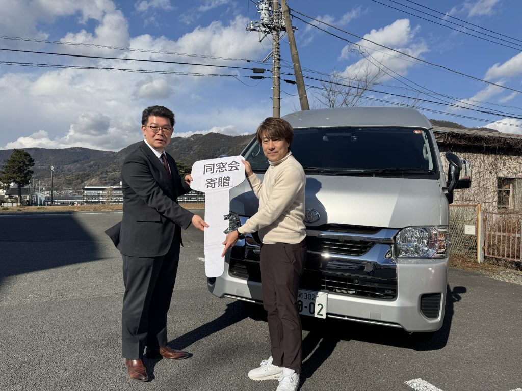 この度、同窓会から公用車(ハイエースグランドキャビン)を寄贈していただきました。 外部行事に参加する際や、部活動の遠征等に使わせていただく予定です。 ありがとうございました。