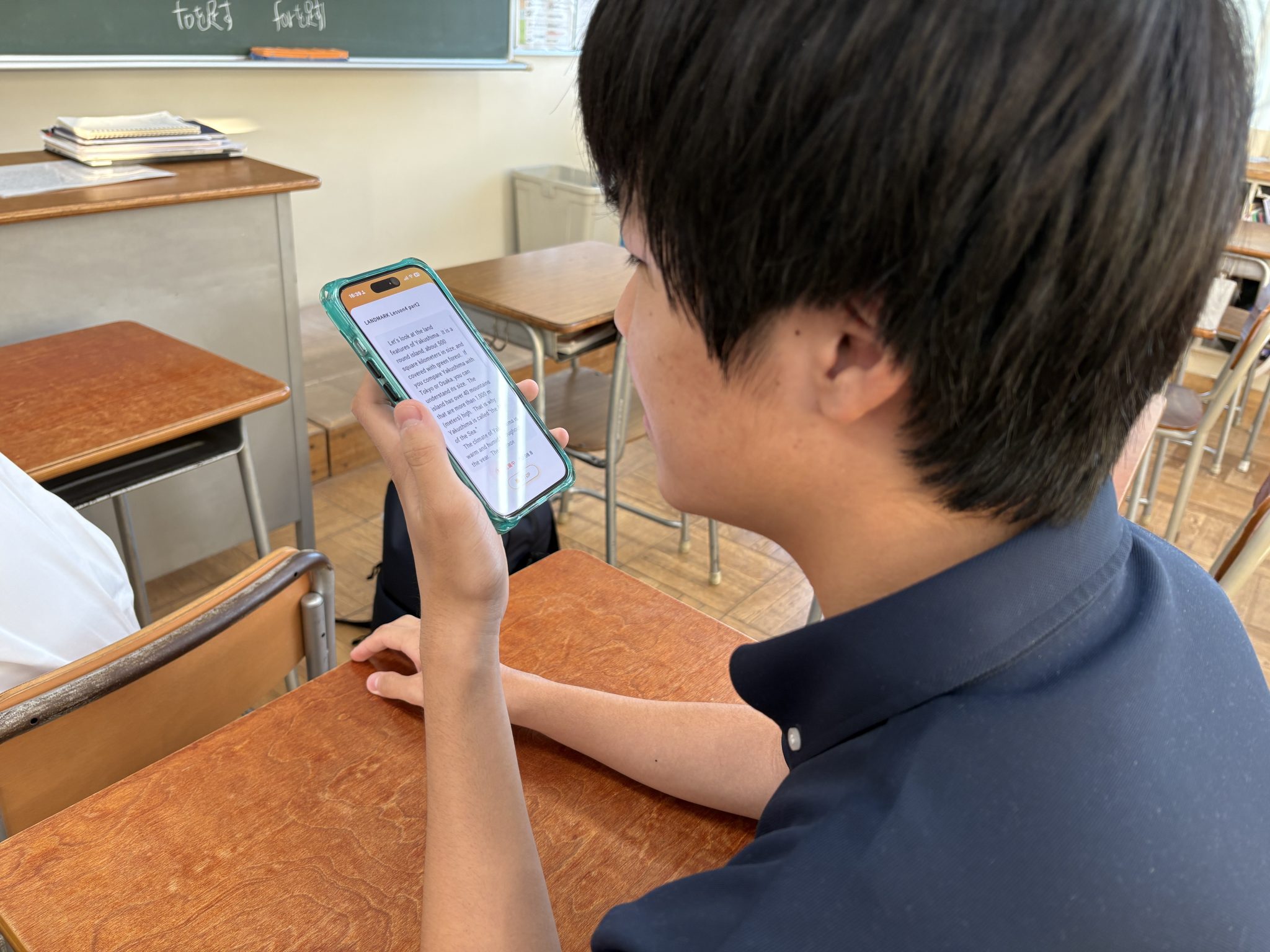 授業では「音読メーター」というアプリを活用し、生徒が自分の音読をAIに採点してもらうことで、発音の正確さや改善点を具体的に把握できるようにしています。