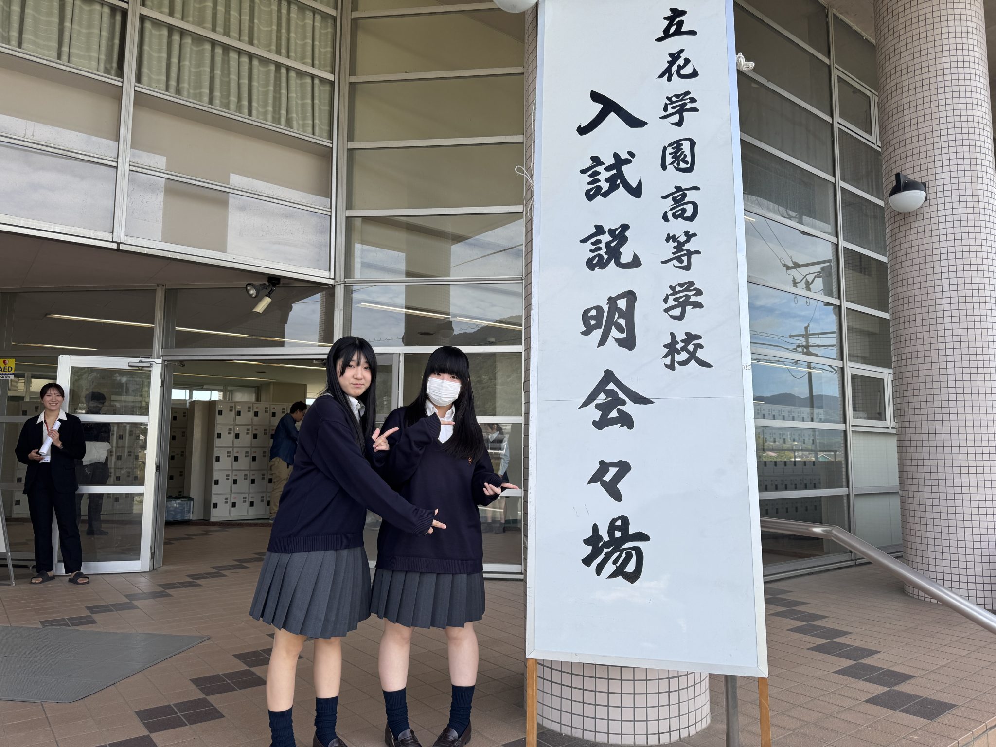 入試説明会では、多くの在校生がボランティアとして参加してくれ、校内のいろんな場所で案内をしています。