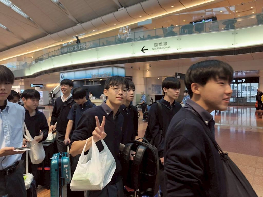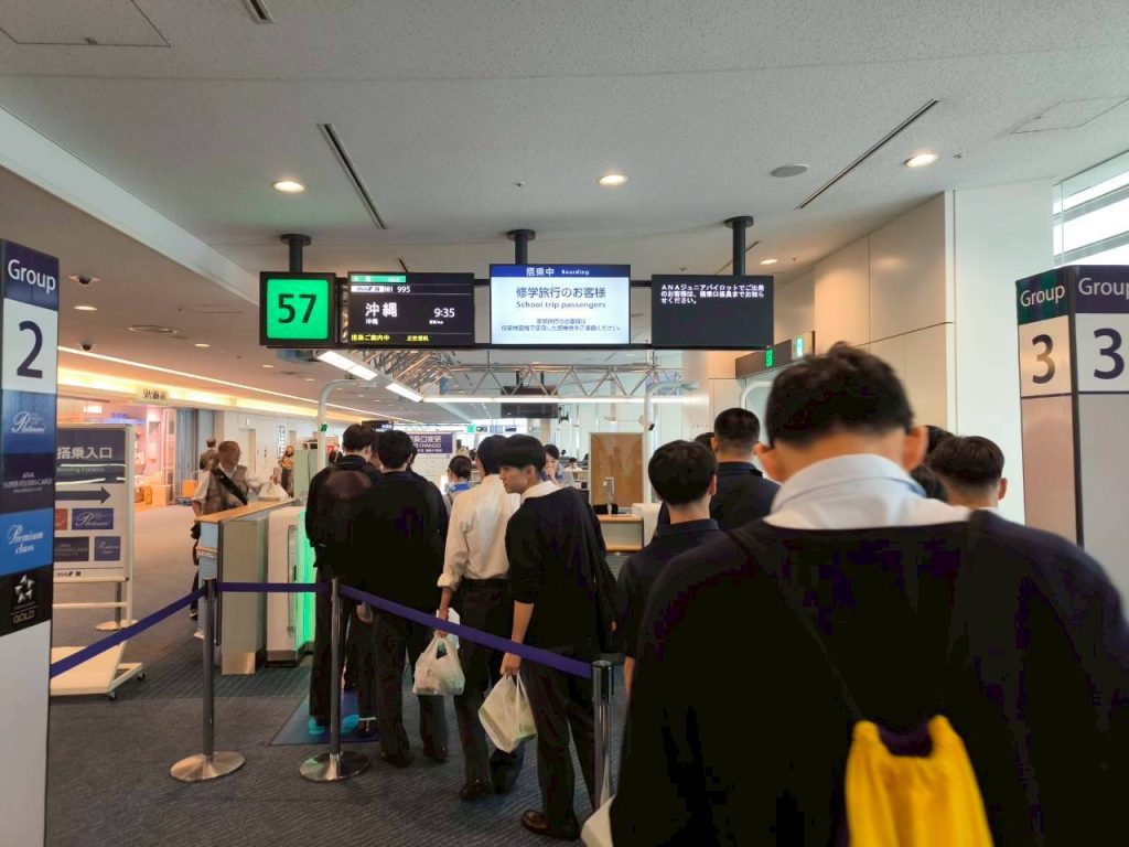 時期的に修学旅行に行く高校が多いようで、本校の他に空港では3校、機内では1校見受けられました。
