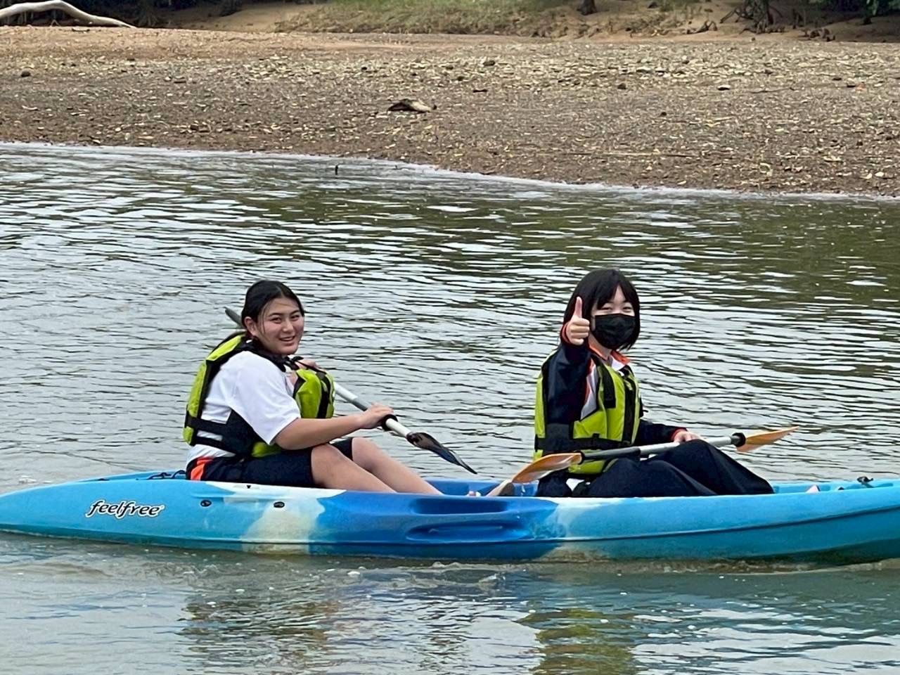 カヌーでは2人一組でカヌーを操り、マングローブの間を進みます。