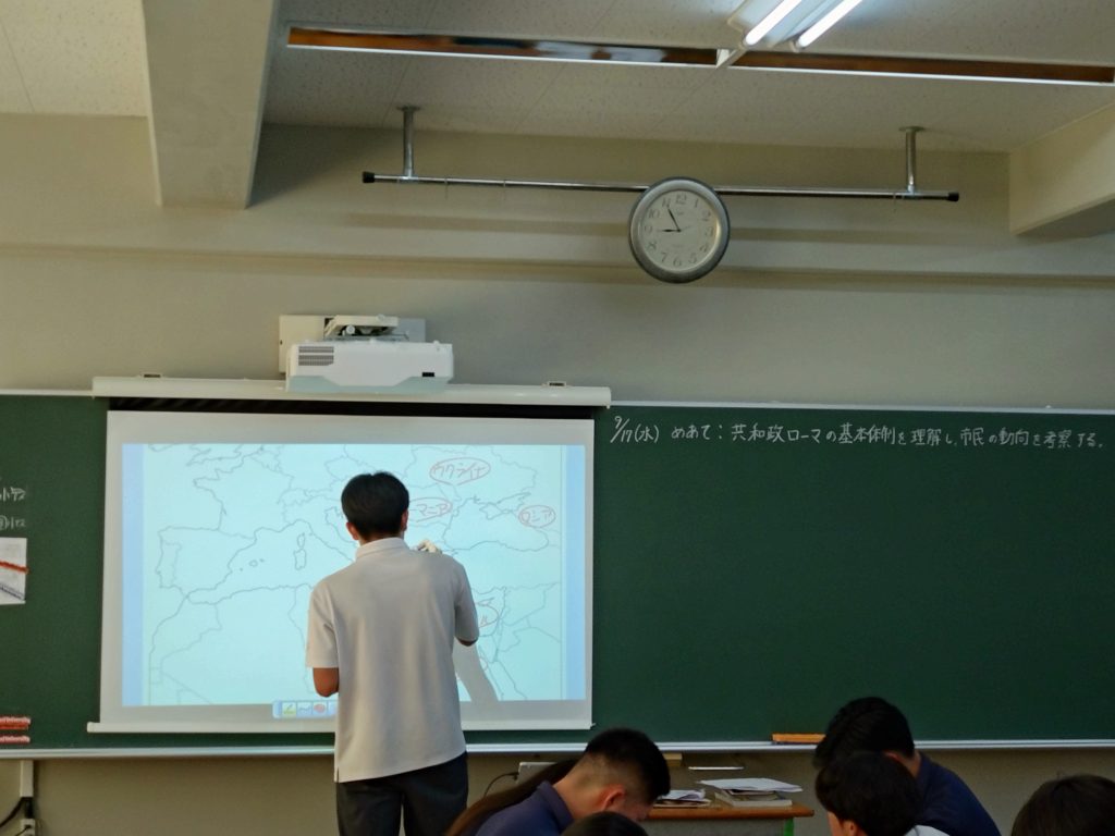 1年生特進コースで行われている公共の授業で、「なぜ、核兵器を廃止するのは難しいのだろうか?」ということをテーマにグループワークを行いました。
