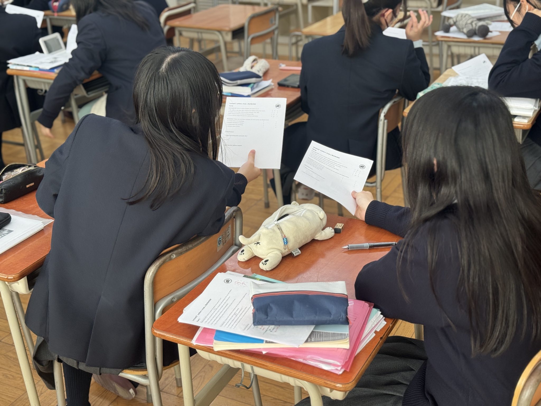 授業内のやり取りでも、教師が指示や質問をできる限り英語で投げかけることで、英語の定型文を自然に聞き慣れ、反応できるようになることを目指しています。