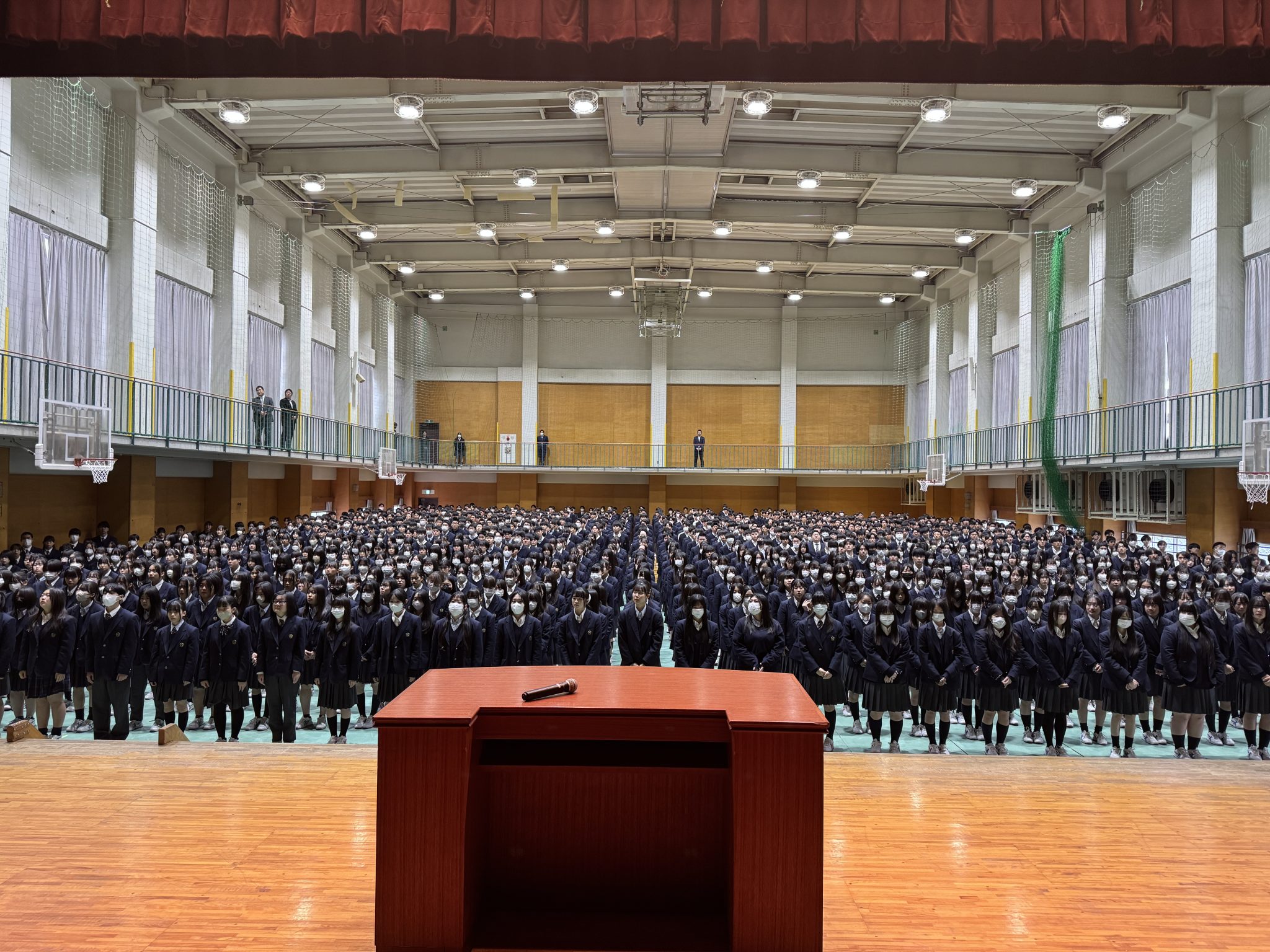 「たくさんの人・声が私たちのことを支えてくれました。生徒会の活動は皆さんの協力が必要で、それがなくなったら成り立ちません。みんなと一緒に学校を作ることで学校生活を少しずつ変えることができました。ここまでやってきて、達成感で溢れていますが、まだまだやり残したこともたくさんあります。次の世代には私たちがやり残したことをやってもらいたいと思います。そして、1,2年生は、今年私たちにしてくれたように、次の役員のことも支えてあげてください。今までありがとうございました。」