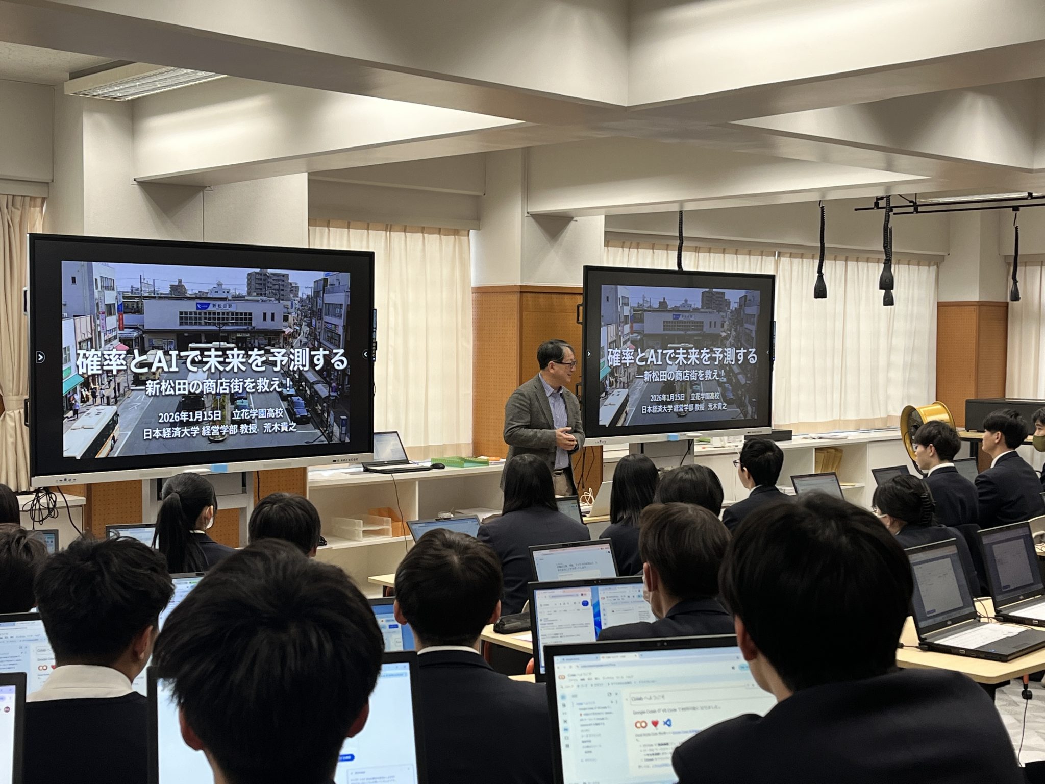 本授業では、大学や企業の方々を講師としてお招きし、専門性・実践性の高い講座が展開されました。生徒は、大学での「履修選択」を意識しながら、複数の講座の中から自ら希望するものを選択して受講しました
