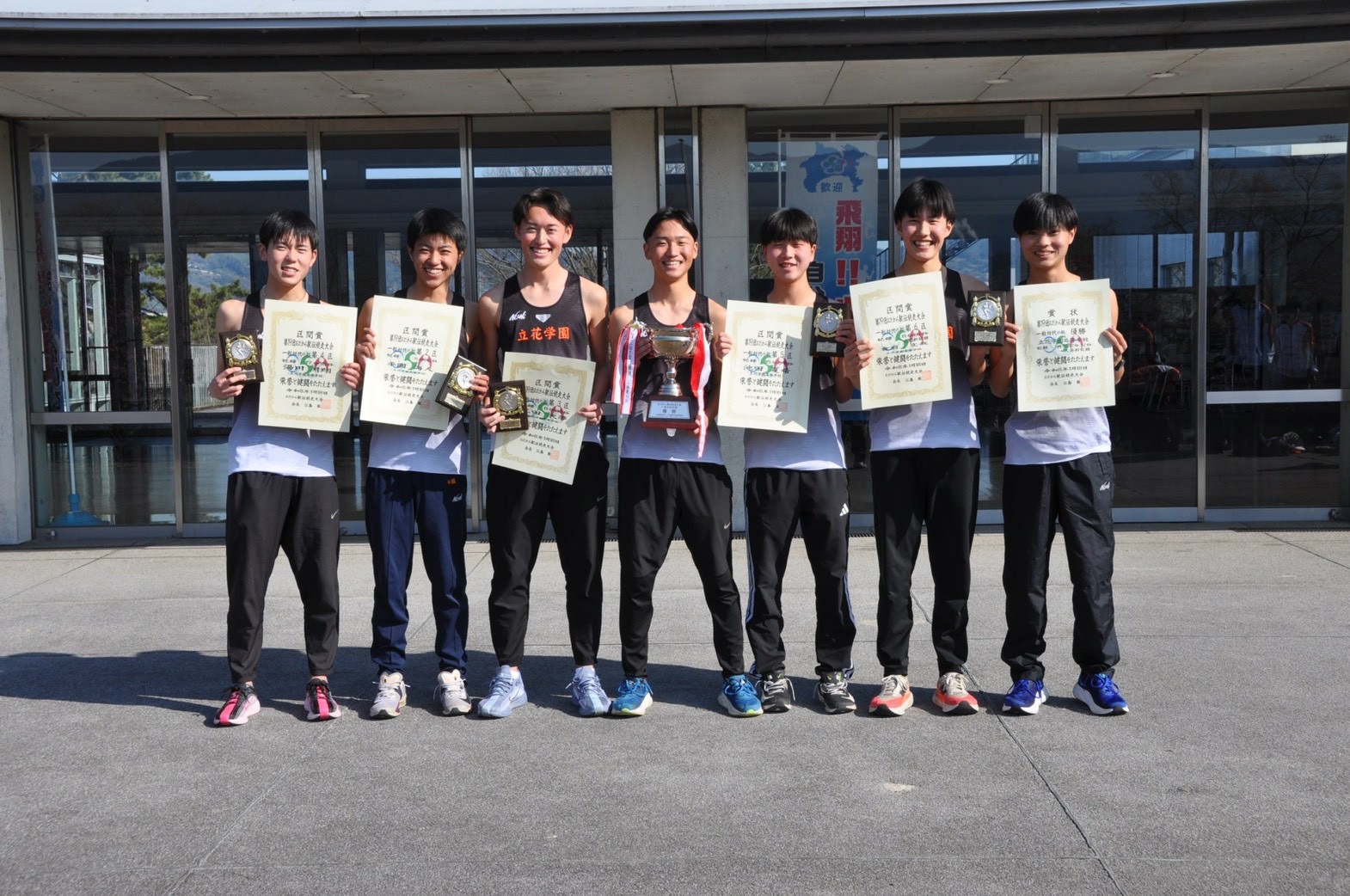 本大会は、小田原市内を舞台に7区間・全29kmを襷でつなぐ駅伝競走です。本校は、昨年・一昨年と連続して準優勝という結果でしたが、年々着実に力を伸ばし、悲願の優勝を成し遂げました。