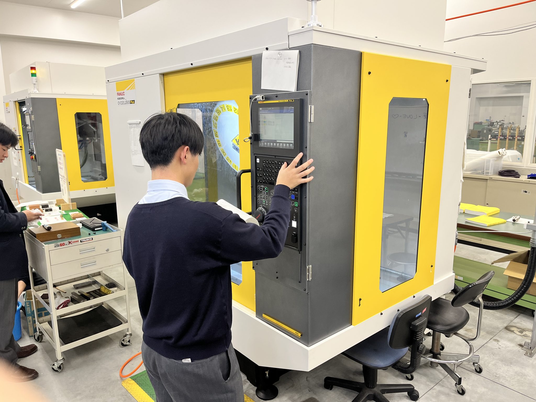 当日は、西部総合職業技術校の概要や人材育成に向けた取り組みについて説明を受けた後、校内の施設見学を行いました。校内は非常に広く、ものづくりや専門技術を学ぶための多様なコースが設けられており、各所で講義や実習が行われている様子を見学することができました。