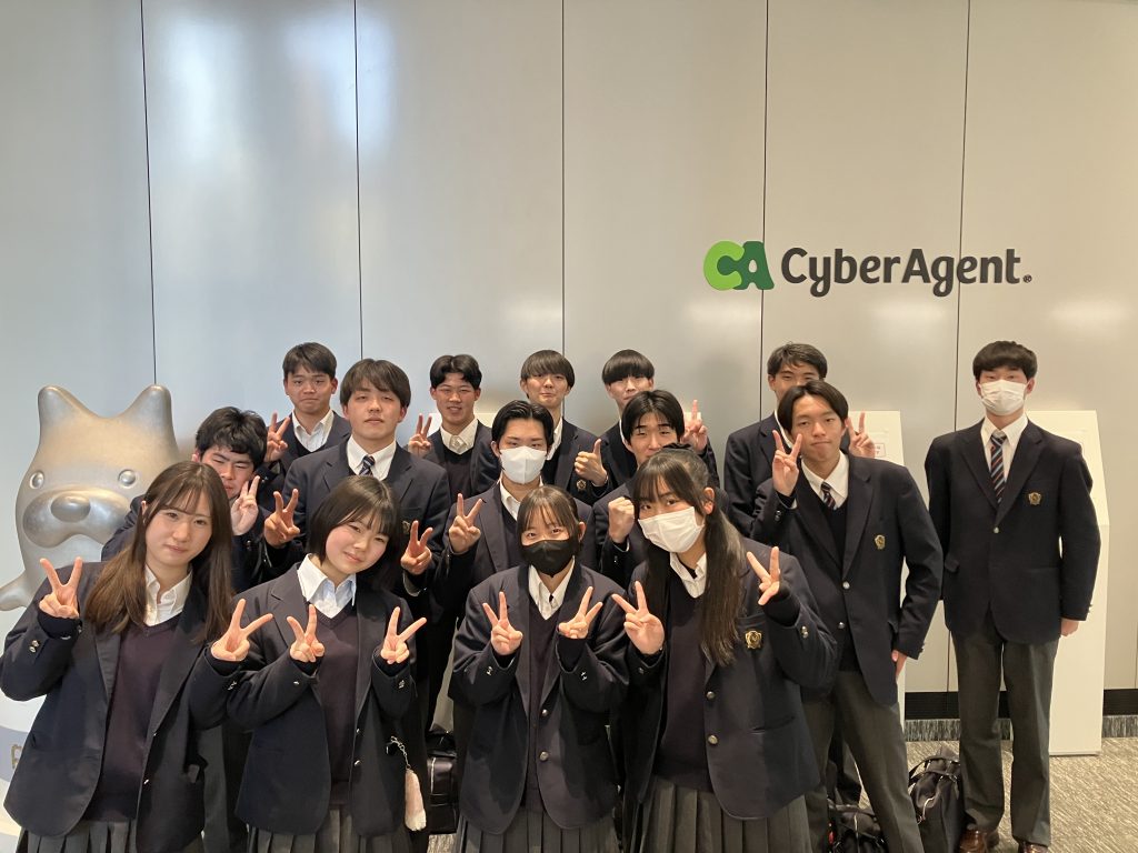 1月27日(火)には、株式会社CYBER Agentを訪問し、企業の成り立ちや事業内容についての説明を受けました。特に、生徒たちにとって身近なABEMA TVの番組制作の舞台裏や、人気ゲーム事業「ウマ娘」の開発に込められた工夫や想いなどの制作秘話は大きな関心を集めました。