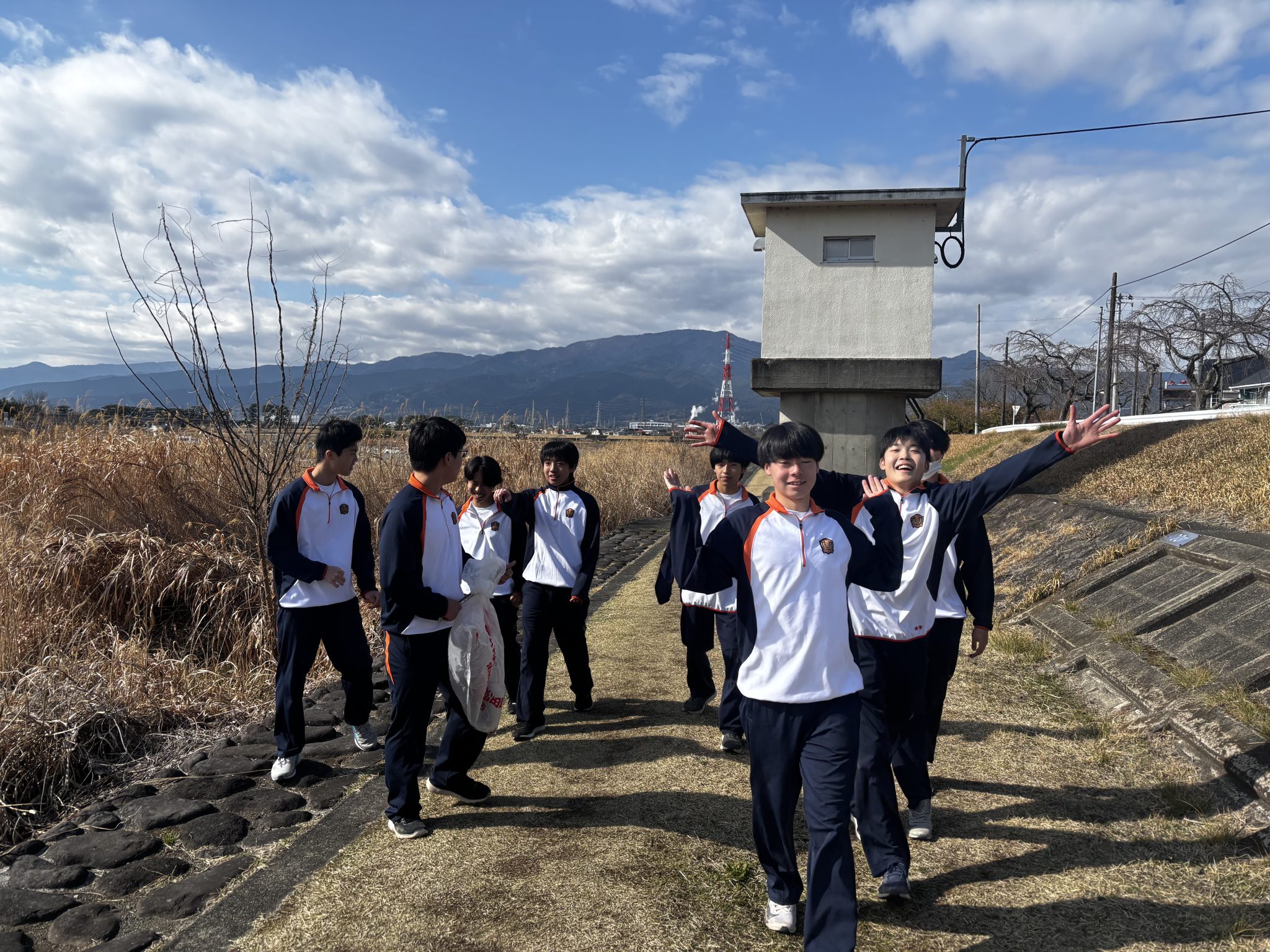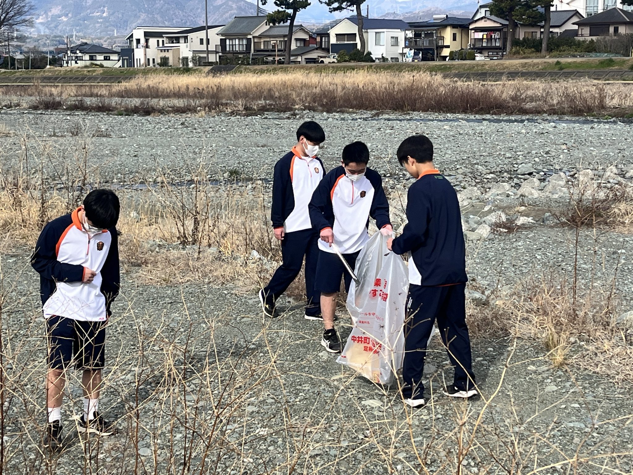 活動中、生徒たちはごみを丁寧に拾い集め、普段お世話になっている地域の環境を守ろうと取り組んでいました。本校は豊かな自然に囲まれ、校舎の目の前には川音川が流れています。この恵まれた環境を大切にし、生徒たちは一つひとつの作業に熱心に取り組んでいました。