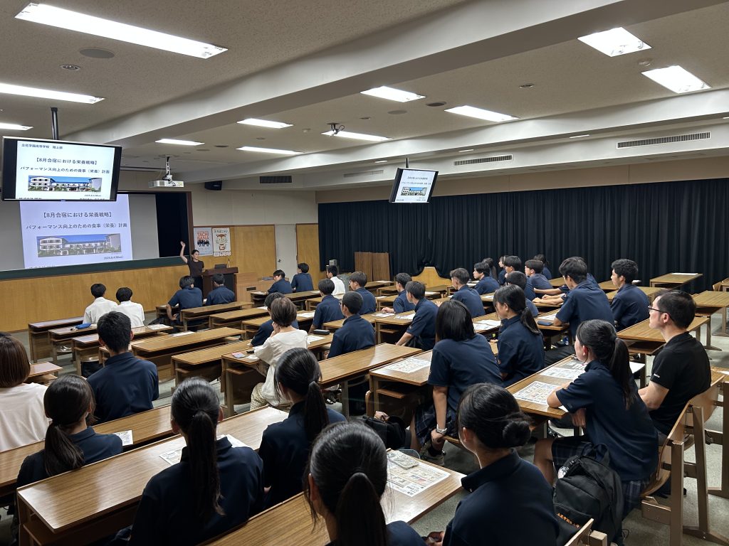 2025年8月4日(月)、本校にて「株式会社明治」による栄養講座を開催いたしました。 今回は、夏合宿を控える陸上部部員とその保護者の皆様を対象に、運動時に必要な栄養管理についての理解を深めることを目的とし、明治の管理栄養...