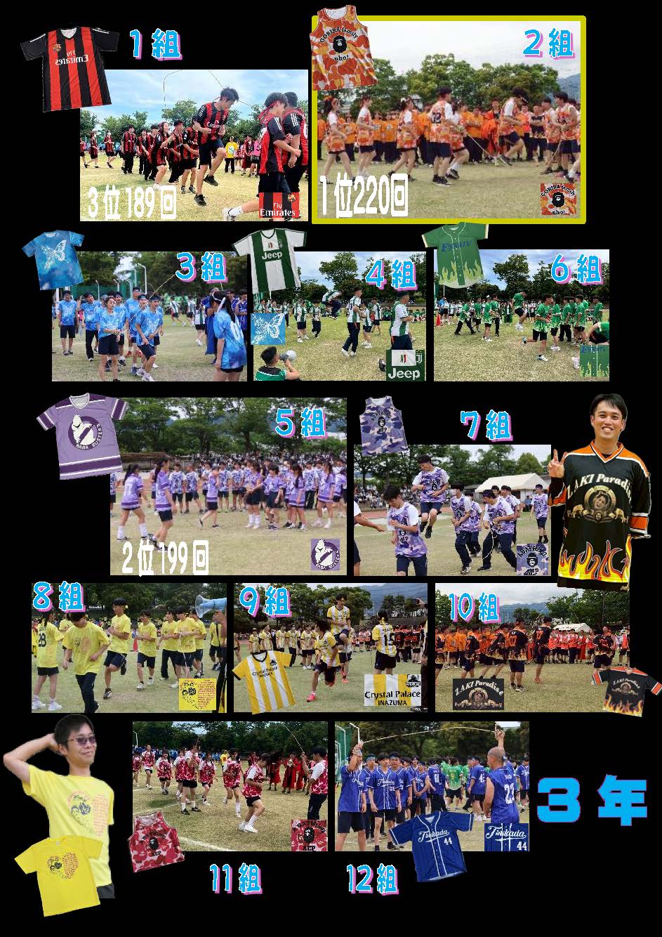 クラス対抗大縄跳び1位:3-2(220回)1回しかひっかからなかったそうです。2位:3-5(199回)、3位:3-1(189回)