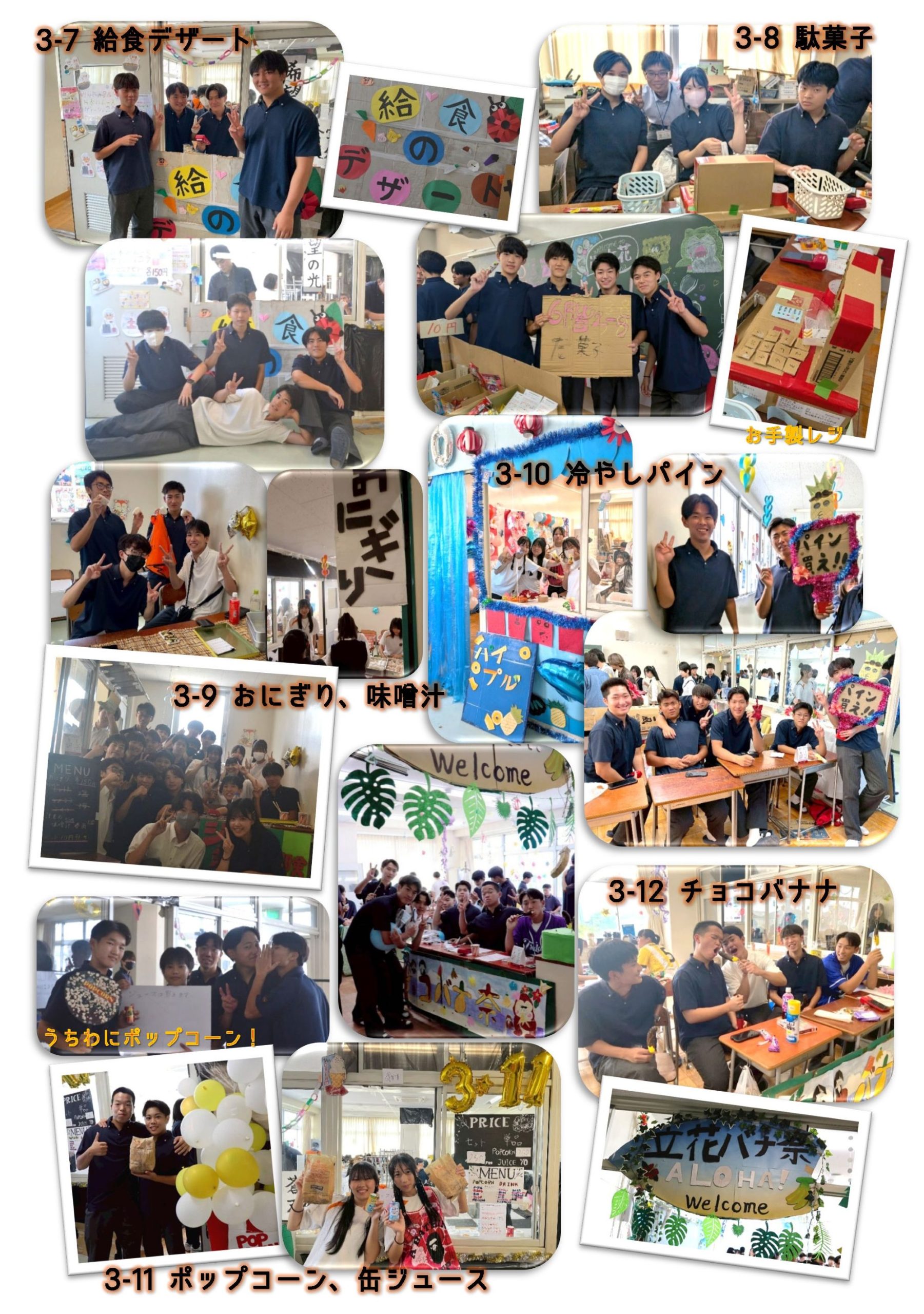 ①オープニングセレモニー、3年出店(全クラス分)、体育館イベント